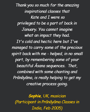 This nine-day retreat in India combines Emil's deep yogic work with an opportunity to meet extraordinary adepts and artists of the Yogic path. Morning sessions of classical Indian music, meditation and Pranayama will be followed by an Asana session that is shared by beautiful Yogini Anouk Aoun. The afternoons are an immersion into Indian philosophy, as well as details of the yogic processes and physiology of breath and contemplation, all guided by Emil. A pre-dawn Mantra recital and contemplative moment is shared with professional musicians - Vidya Rao, the Indian Thumri singer, plans to join us again. She is a phenomenal musician and artist (see www.vidyaraosinger.com). Finally, the afternoons and evenings from Friday to Sunday bring us into a conversation with adepts of the yogic world: a group of extraordinary personalities will be presenting their life story, and open up to interaction with us. Besides Vidya Rao the lineage holder of Chöd, Machig Rinpoche, will again grace us with his presence. Several more adepts will join us for this weekend. Please keep in contact for the details! Retreat and Conversations will be held at the Satsanga Retreat Centre with its magnificent Nataraja Yoga Hall (see www.satsangaretreat.com). The resident chef and her kitchen team will prepare pure yogic meals for us. To the left of this page is a sample flyer (for the past retreat in 2019). This retreat fills rather quickly, we suggest to book as early as possible to secure a place.